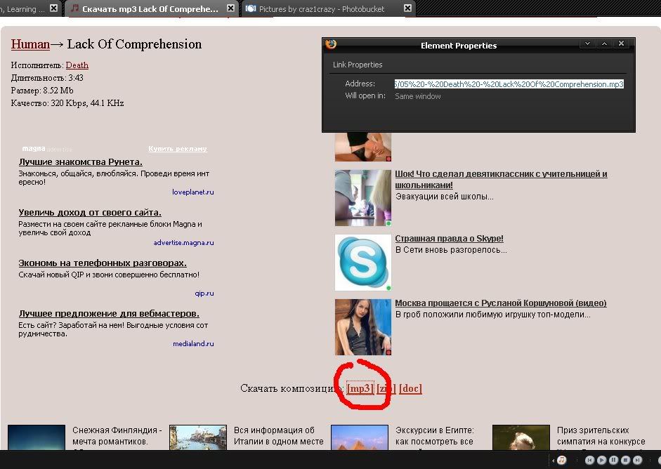 Cuối cùng muốn down vá» máy thì cứ click vào [mp3], còn muốn chèn link vào LoiDich thì bạn nhấp phải chuá»™t trên chữ [mp3], chá»n Properties và copy toàn bá»™ link ở phần Address: để paste lên LoiDich.